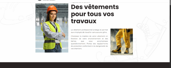 Pour votre confort et la sécurité au travail, vous devez porter des accessoires de protection, chaussures de sécurité et vêtements de travail à votre taille.
